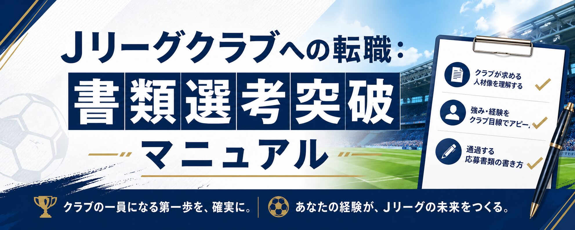 10以上のクラブに応募し、複数内定を獲得した現役スタッフの視点から、今のJリーグが本当に求めている「ビジネススキルを活かした書き方」をダイジェストで公開します。